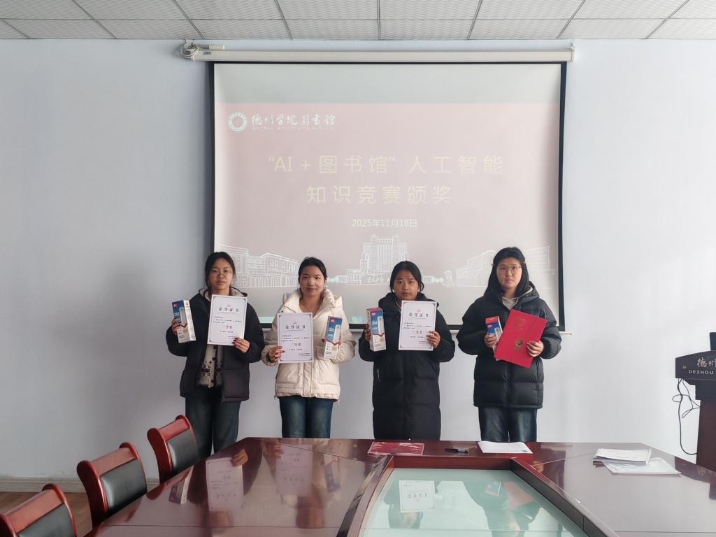 近日,由德州市高校图书馆联盟与超星集团山东分公司共同主办的2025年“AI+图书馆”人工智能知识竞赛顺利落下帷幕。德州学院图书馆对本次竞赛高度重视、精心组织,全校学生积极响应、热情参与,凭借丰富的人工智能知识积累与优秀的临场发挥,在比赛中取得了优异成绩,集中展现出德州学院学子扎实的专业素养与昂扬的学习风貌。