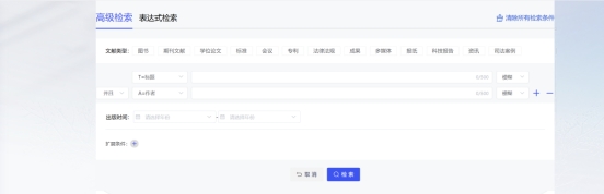 高级检索:点击“高级检索”,可按文献类型(期刊/专利/标准等)、时间范围、学科分类等多条件组合筛选。